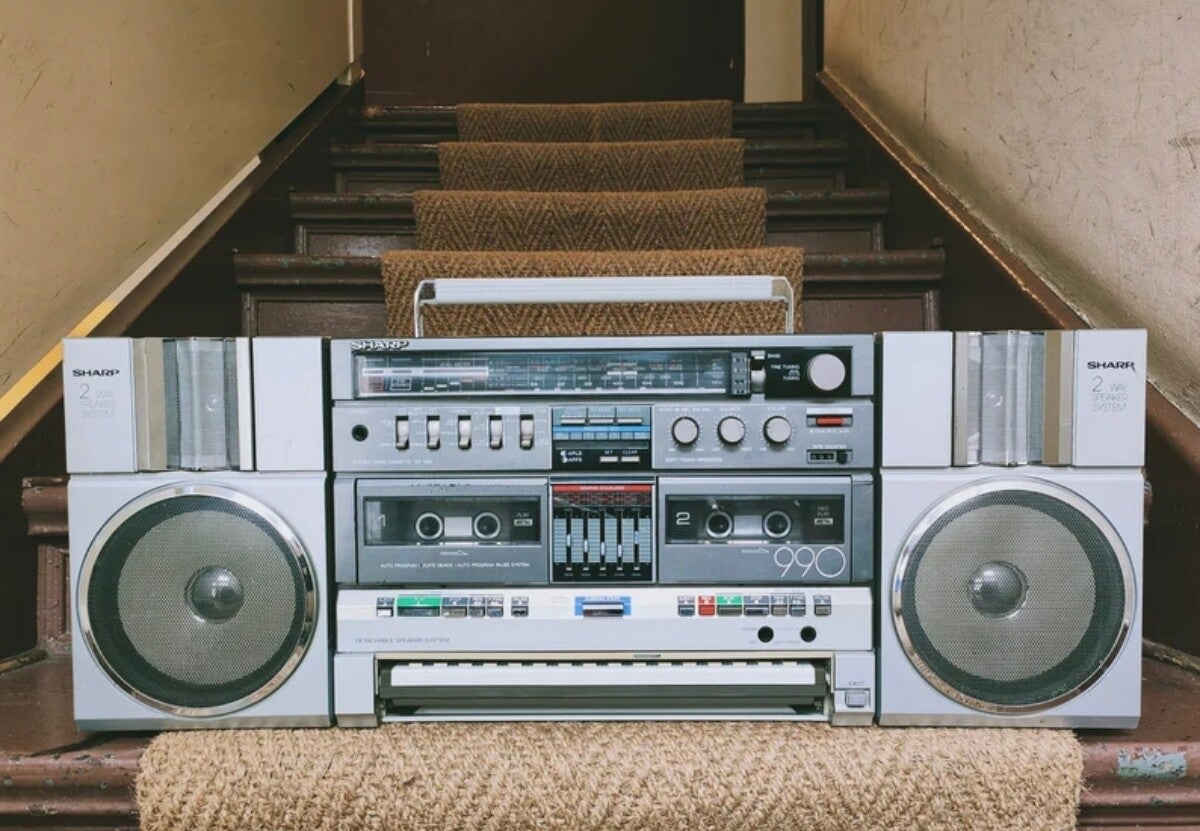 Boombox – Ghettoblaster mit eingebauter Orgel/Tastatur, Musikprozessor, SW: 5,95 – 18 MHz, FM: 87,6 – 108 MHz.